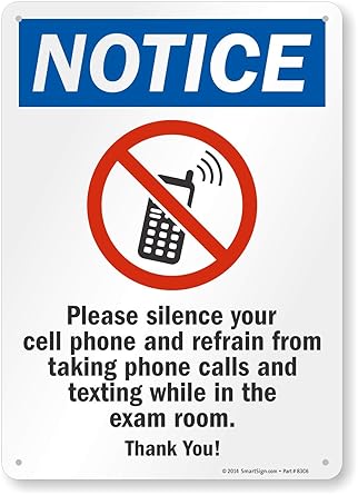 Smartsign Notice Please Silence Your Cell Phone And Refrain From Taking Calls In The Exam Room Sign 10 X 14 Plastic Amazon Com Industrial Scientific